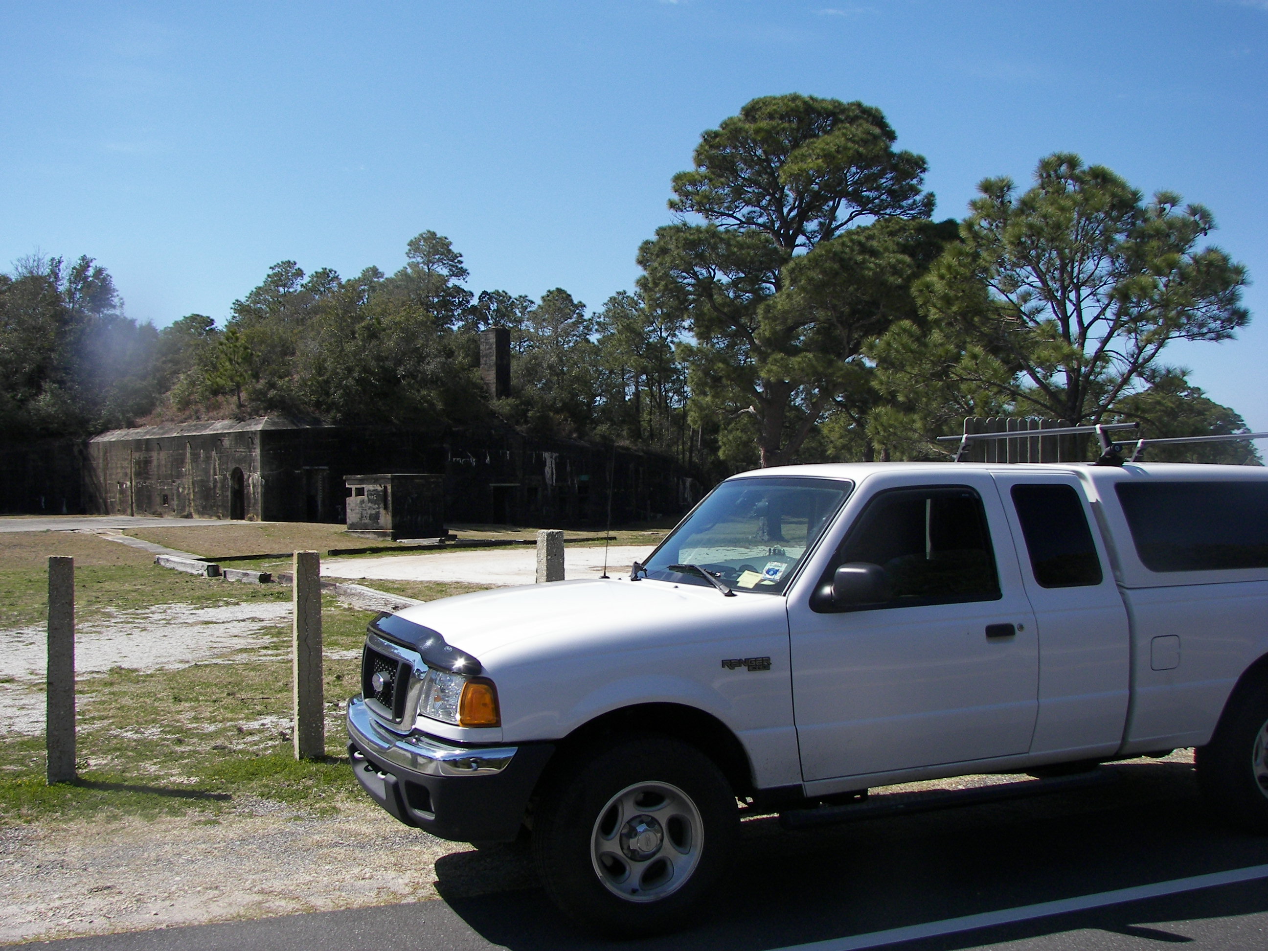 Soon the beach of Florida turned into a section of beach in Alabama, and this hwy 182 ended, oops. It was necessary to ‘back-track’ (I hate to back-track) a few miles over to Fort Morgan (civil war era fortress) and catch the Ferry to avoid city traffic – 20 miles later and just past the remnants of a Fort I stood waiting in-line at the Ferry Landing.