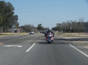 I noticed Pensacola’s gridlock as the biker ahead continued to put his foot down. With the sudden congestion I jumped on hwy 29 and interstate-10 to ‘skirt’ the city; all those people ……