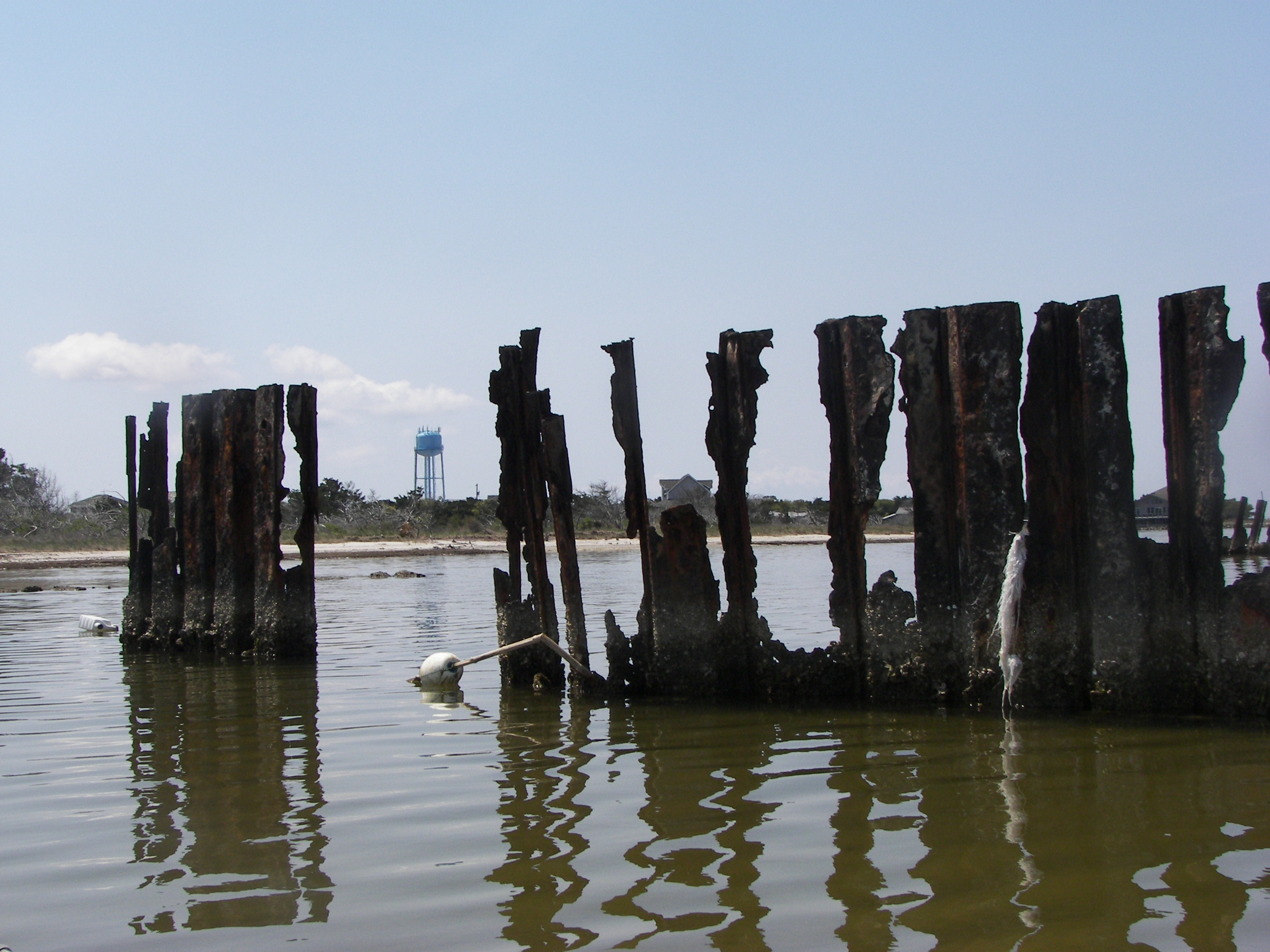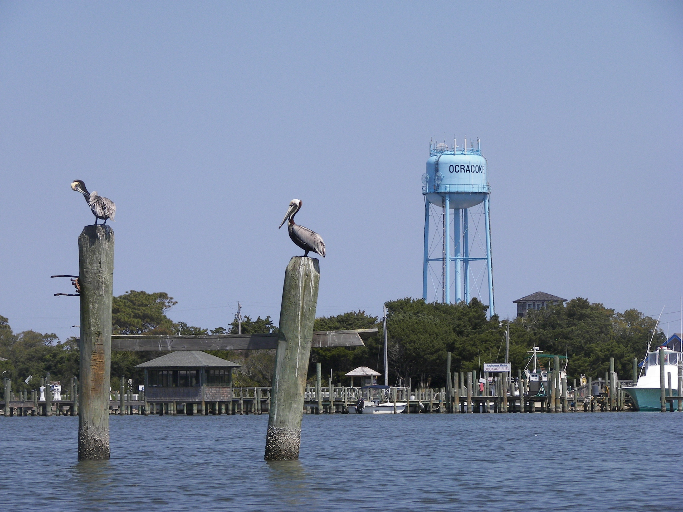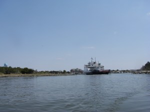 It is also the home and port pretty much of Ocracoke, parking is aplenty so I put the kayak in at the landing on the Pamlico Sound side of the Visitor’s Center and paddled into the channel where the fishing boats and ferry’s pass, very calm and peaceful (except for the pile-driver at the mouth – WHAM, WHAM).