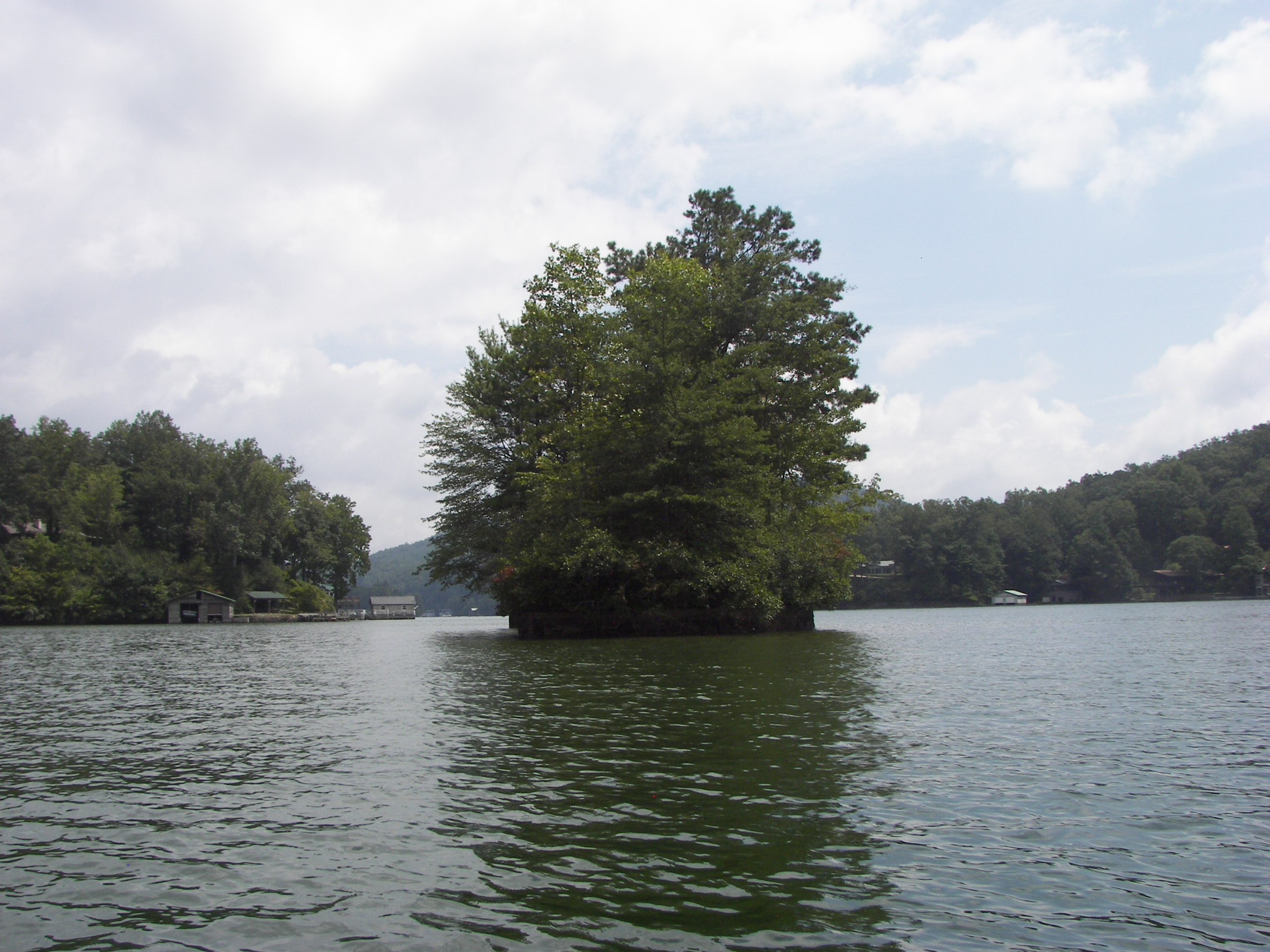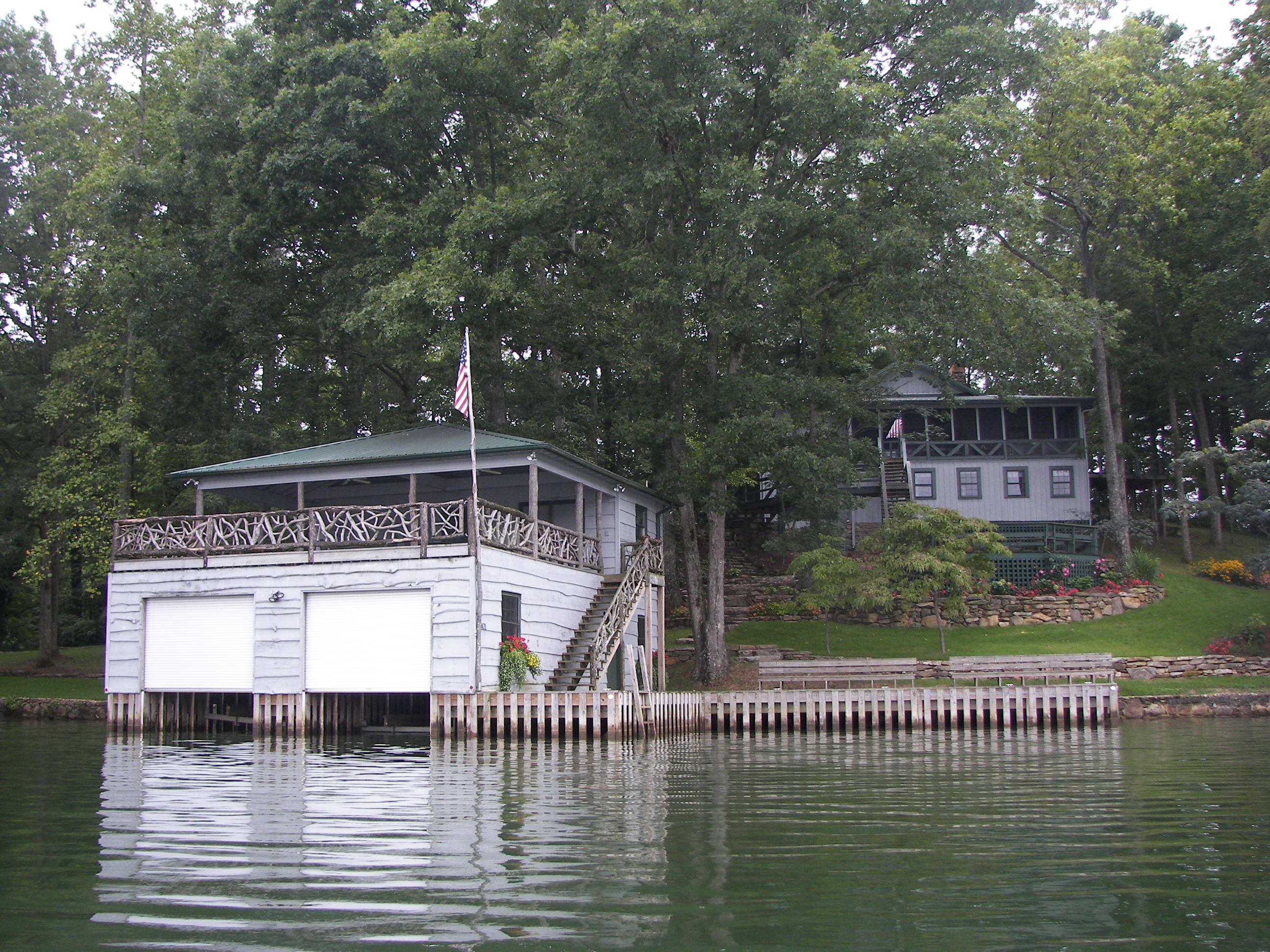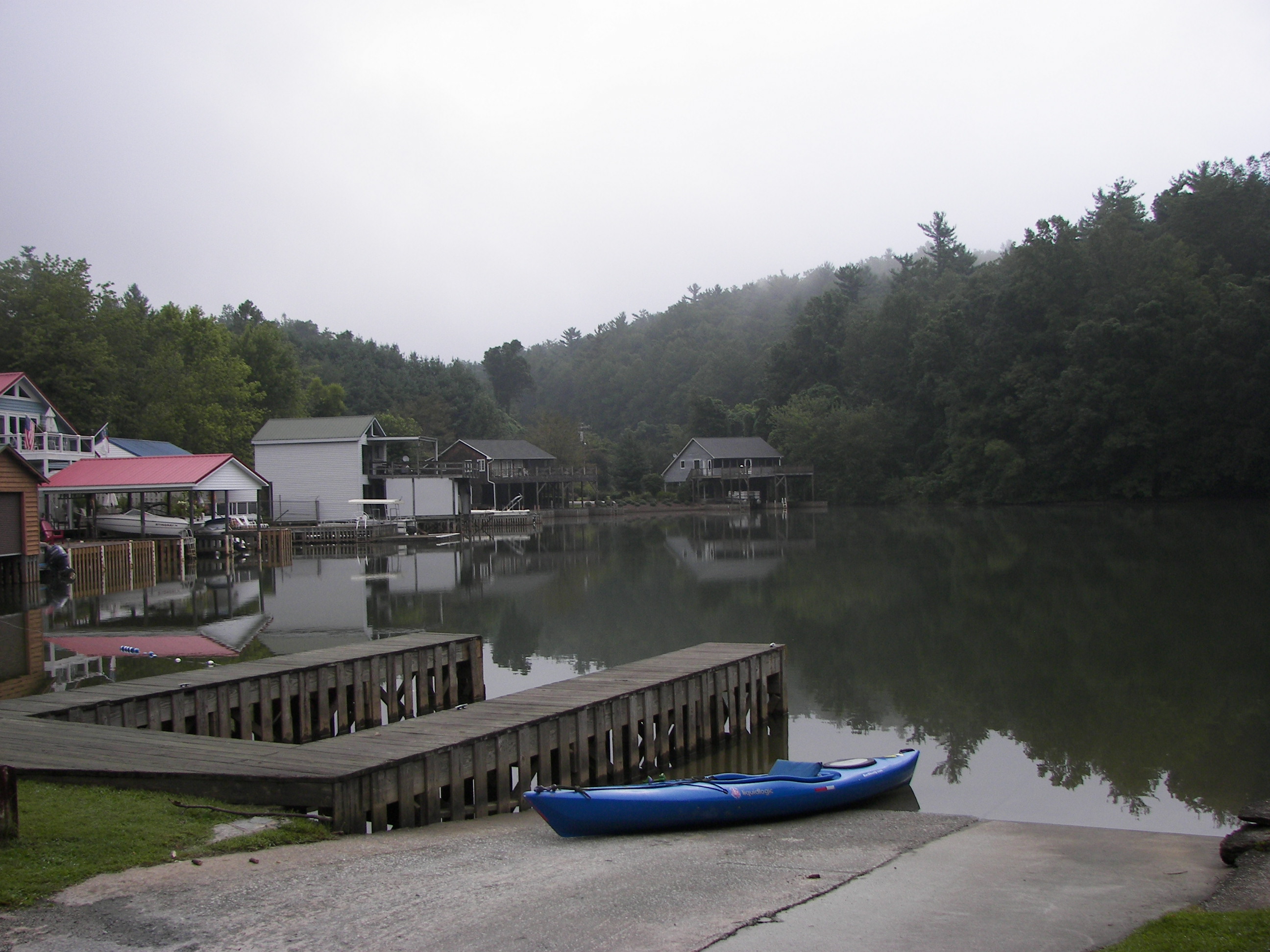 Lake Summit has many boathouses with each their own character (reminding me a little of Lake Burton). The Northern shore catches the beating sun on summer days nurturing several patches of kudzu – but those areas are small in size and Summit’s shore has all the natural characteristics of a mountain lake – its just squeezed in between the homes.
