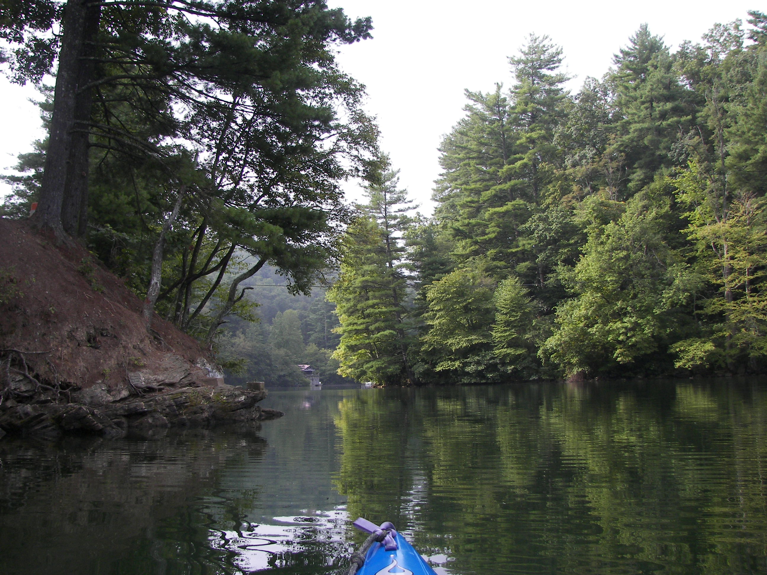 Just beyond the RR trestle access ends with the dam in a little cove area…. the Green River continuing through the gorge creating some awesome white-water paddling before calming once again at Lake Adger.