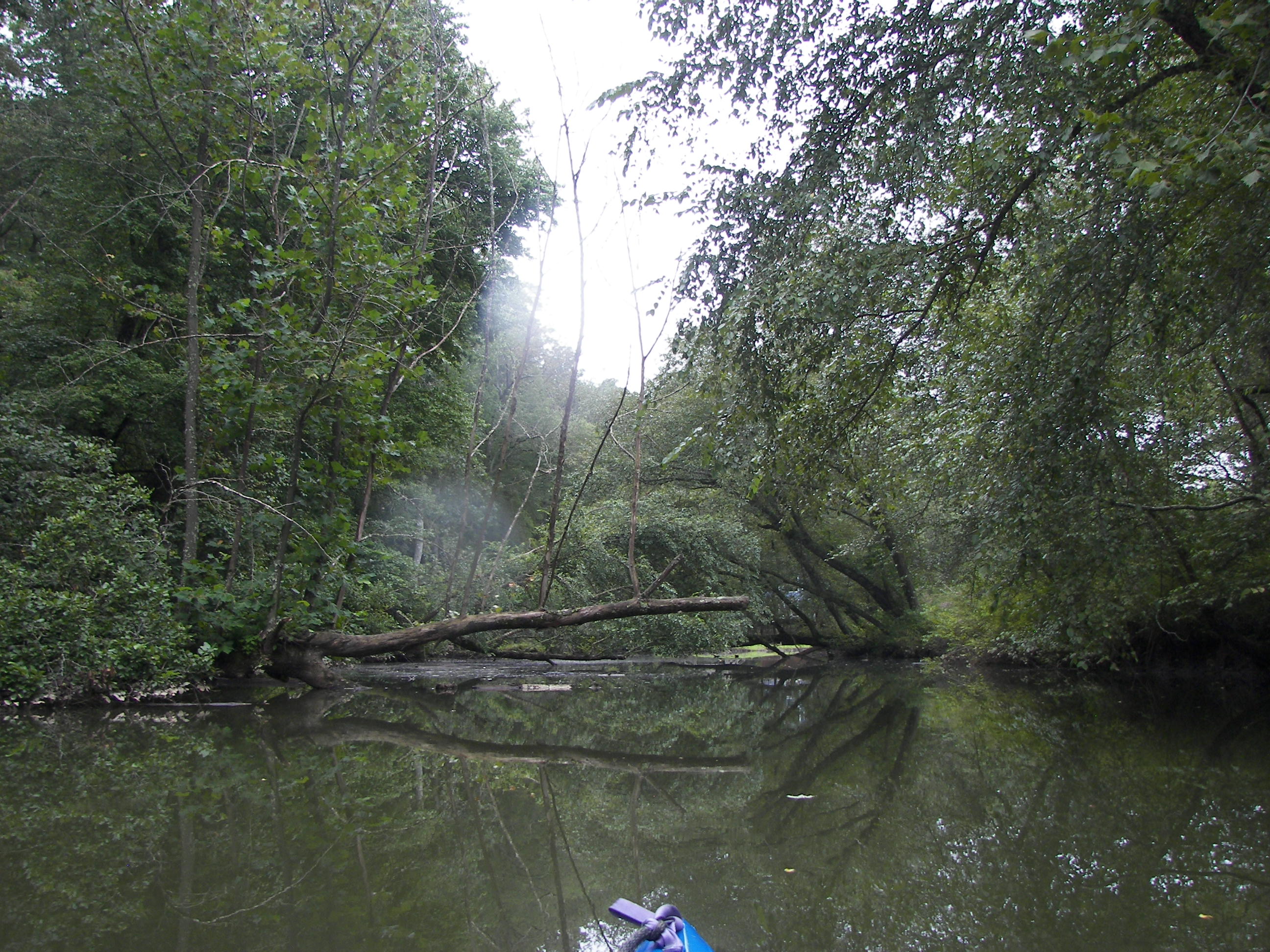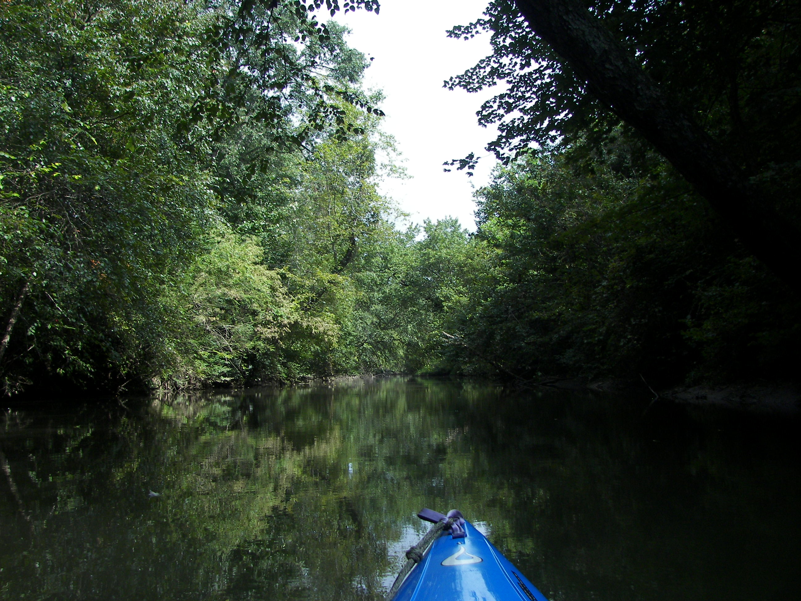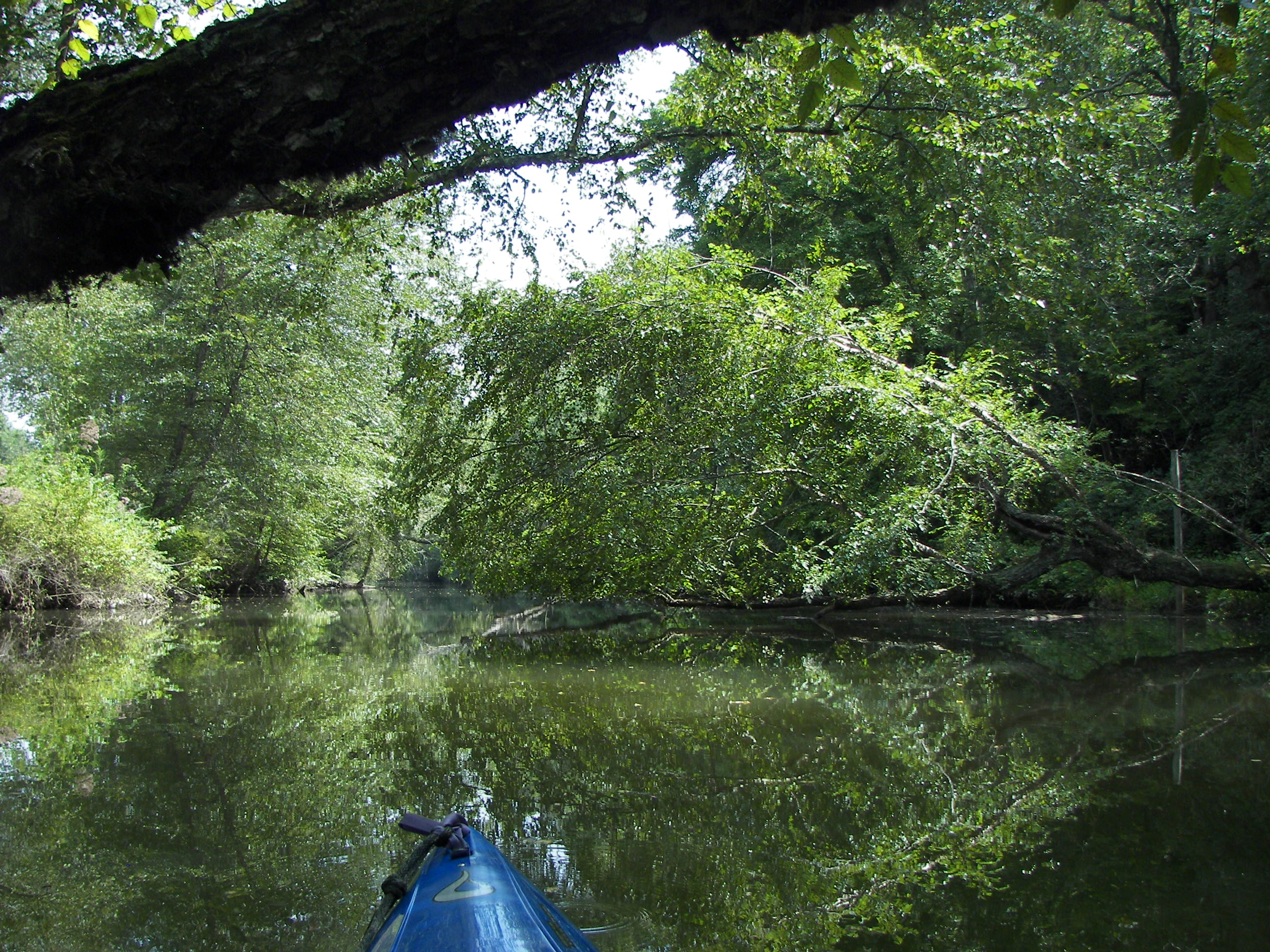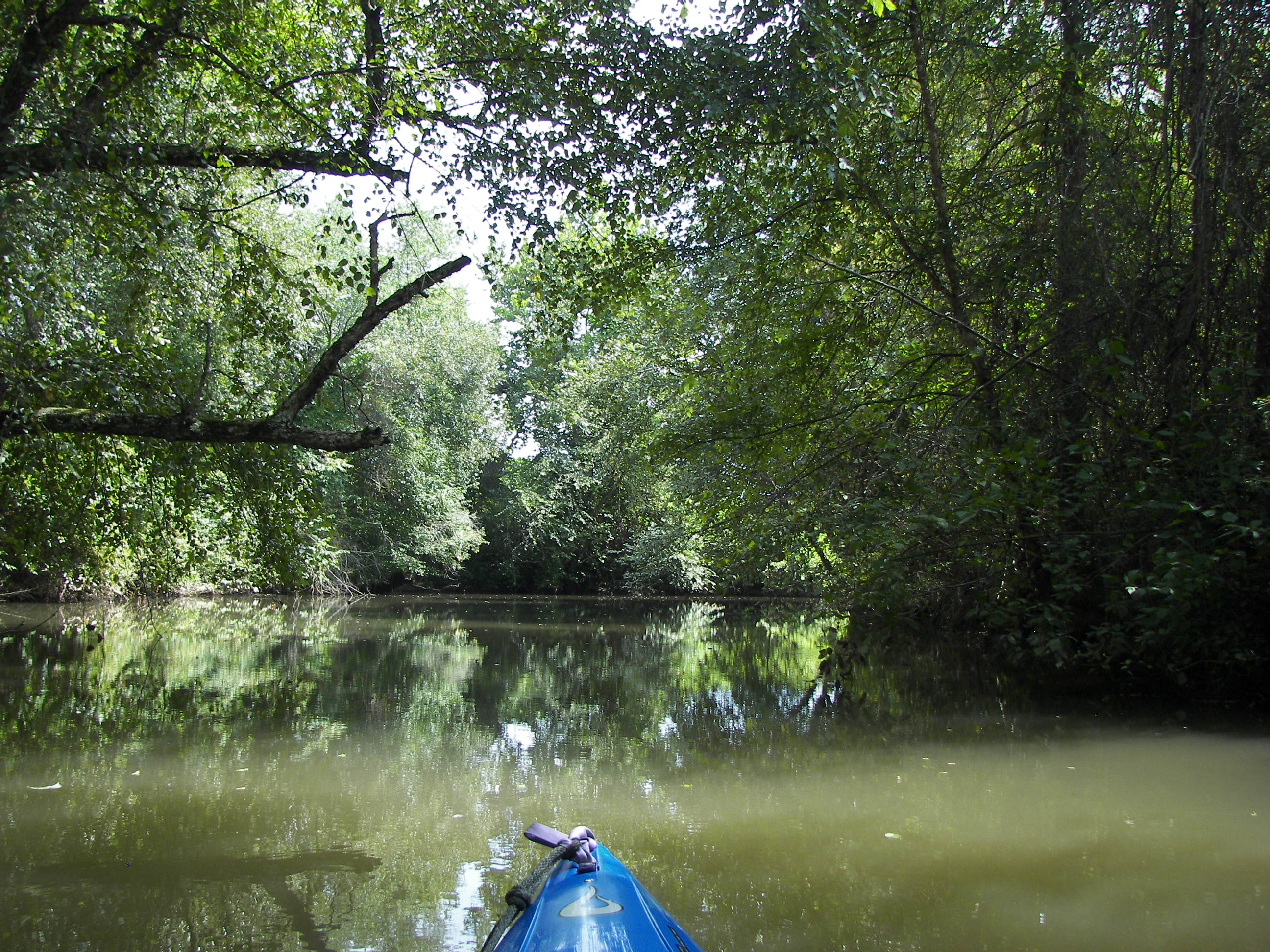 Its a gentle paddle against a soft current, there is some over-brush, but that just makes the ride interesting.