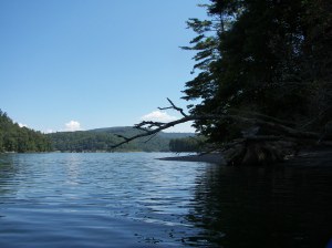 With the afternoon sun beating at me it was time to find the shade of an island and stretch. It was about six and I had been paddlin steady for five hours, no-way I could see the remaining coves – ones which I knew had streams flowing into them.