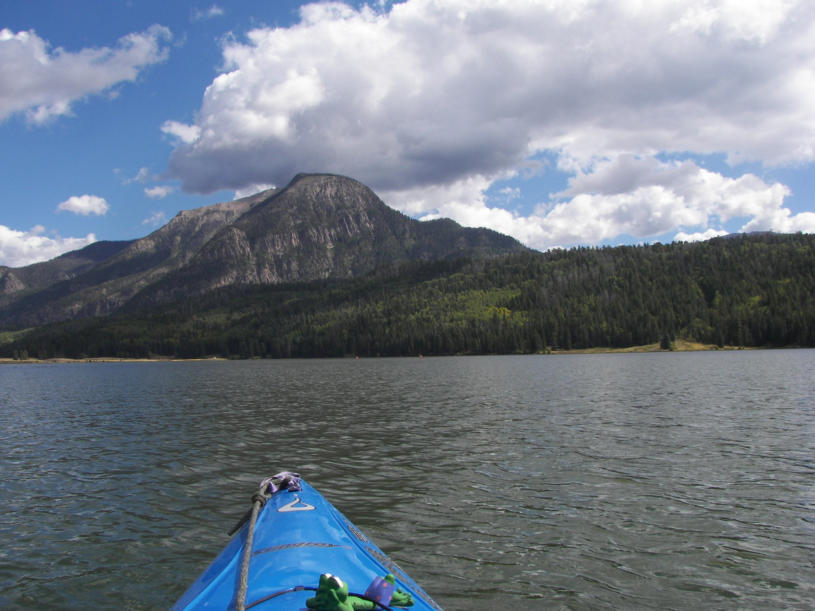 I continued paddling and drifted the ‘dead-air’ space on the windward side of the lake, then slowly ‘fell in’ with the breeze pushing back down through the middle of the lake. I guess you can’t always predict staying along one shore especially when coves and inlets are involved – variables include wind, shade, exercise, and what ever your intent was with the trip – this lake had no coves to speak of so ‘dropping-off’ into the breeze on the ‘top side’ and drifting back down the middle was a good option for today.