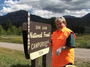 and right past this lady Patti, a park volunteer for the past 13 years, she thanked me for not blowing dust all over her with the truck – but I didn’t do it on purpose – no hurry here. My plans were to drift back down this dirt road just like I had drifted back down the middle of the lake, ez.