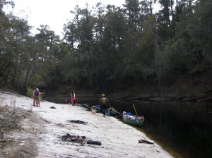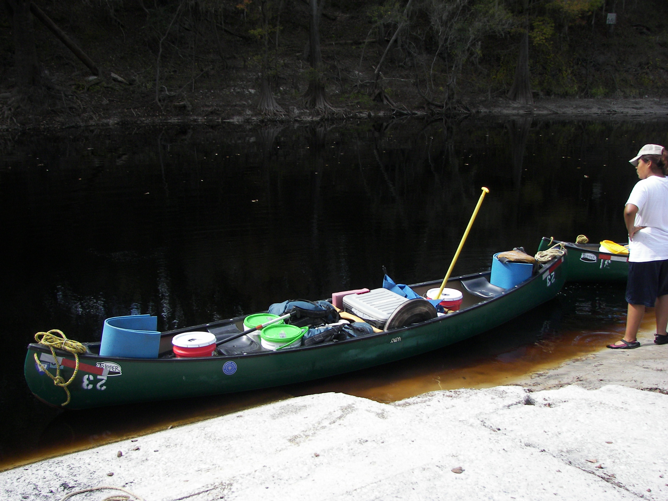 This particular Outward Bound group was ‘breaking camp’ on one of my stops (Nov 09), about 5 canoes – my interest was with/how their canoe’s were packed. There is a 1000′ portage a few miles down river from this point at Big Shoals – a class III rapid before White Springs.