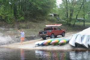 This is several members of the group (Franks) encountered later at the Dowling Park River Camp, where they showed me some fossilized sand dollars and other fossils from the crustacean period. These guys have taken an annual paddle for forty years….