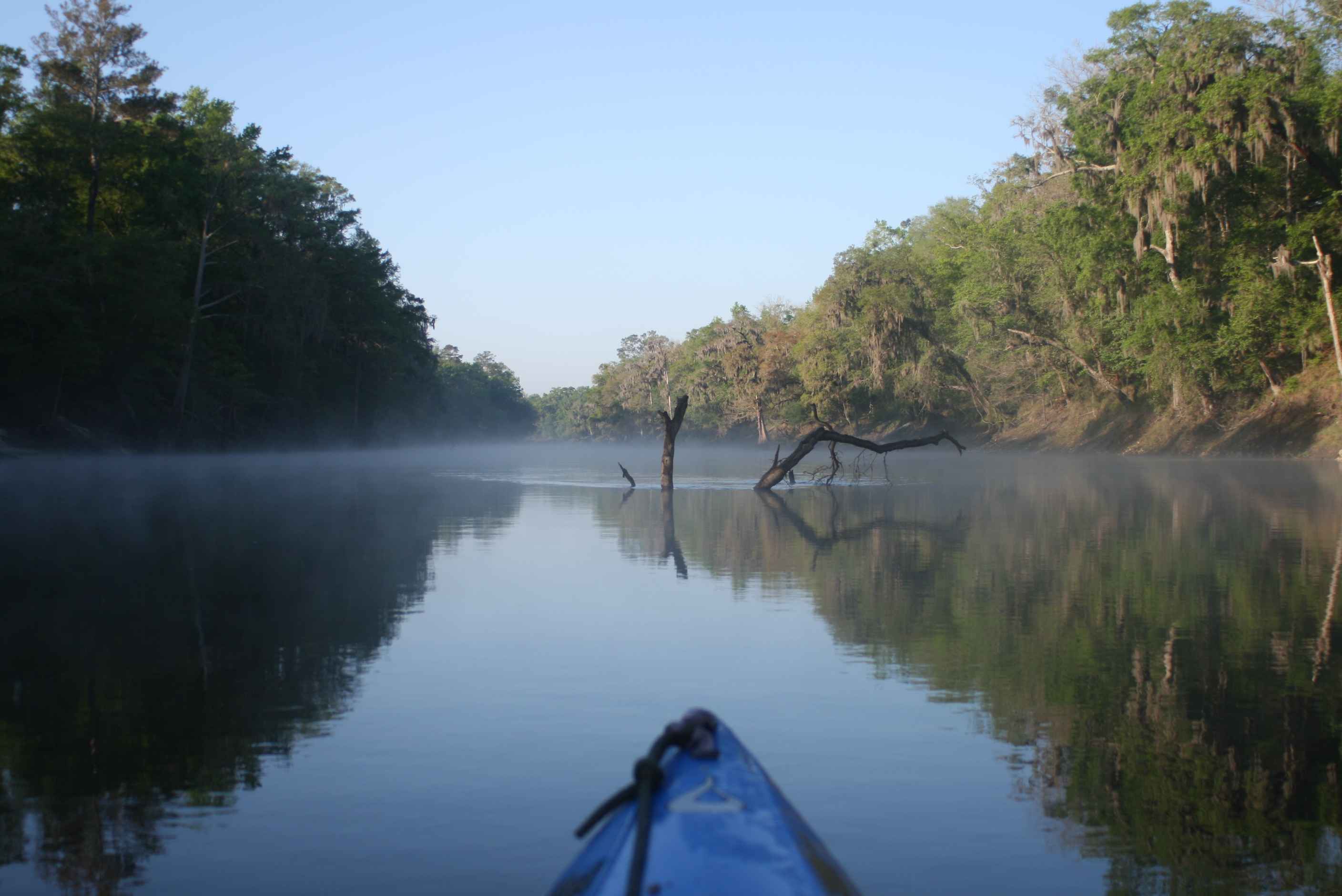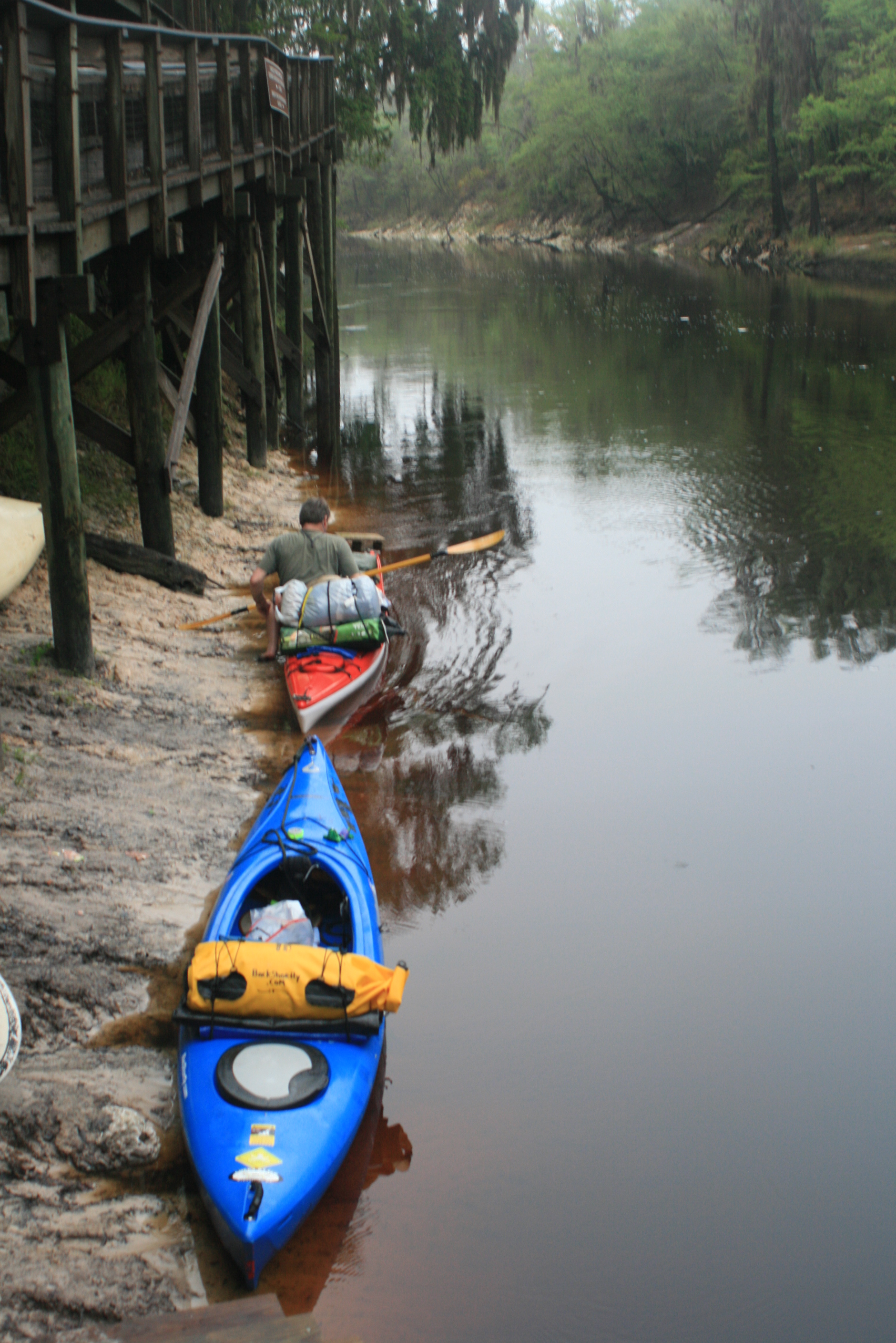 I slept very well, nothing around but the rushing water, the Owls – every night the owls….. sleeping on the level dock worked well – I was up and paddlin the Suwannee once again by 815 – there was lingering moisture from all the rain.