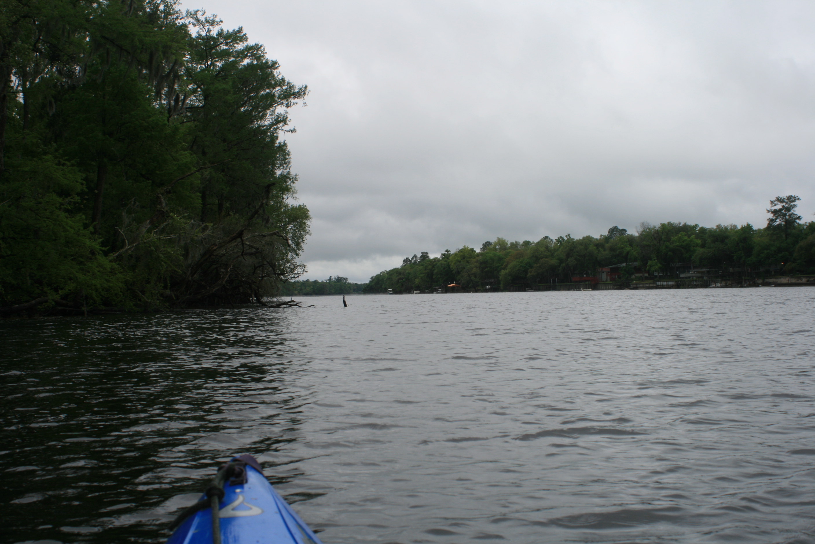 The Suwannee’s now become flat and wide, the shoreline is only sporadically showing mans presence – fewer residences and more hunting and fishing type of camps. There were structures nestled sporadically between the cypress stumps, trees, and protected habitat.