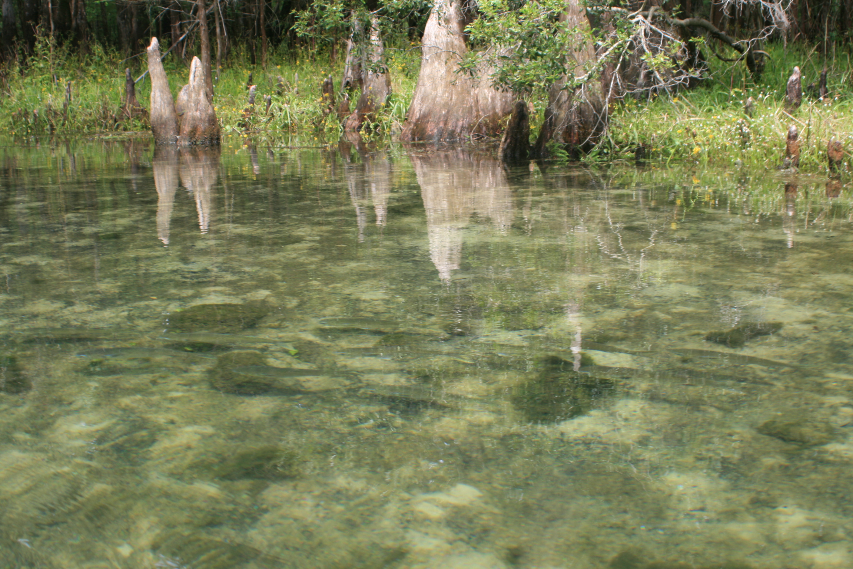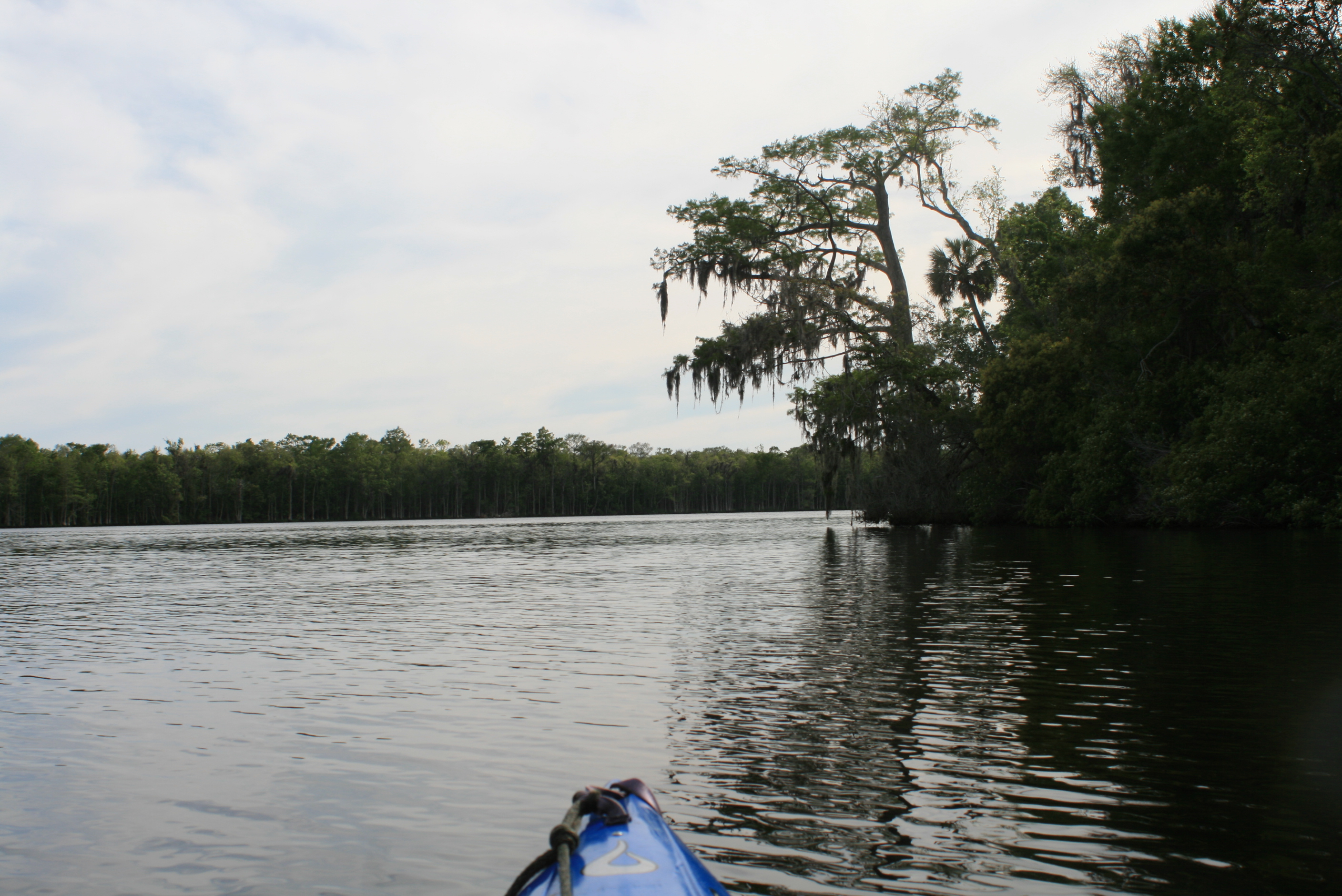 Paddling into the clear water of the Manatee Spring (allowed April to Nov) I paddled past a single Manatee, huge with a rounded fin, a seemingly gentle and harmless giant – these animals were commonly referred to as ‘sea-cows’ when I was growing up in Ft. Myers. They have done alot to protect the Manatees, after you have seen one with propeller wounds across their back, you really appreciate the State’s efforts.