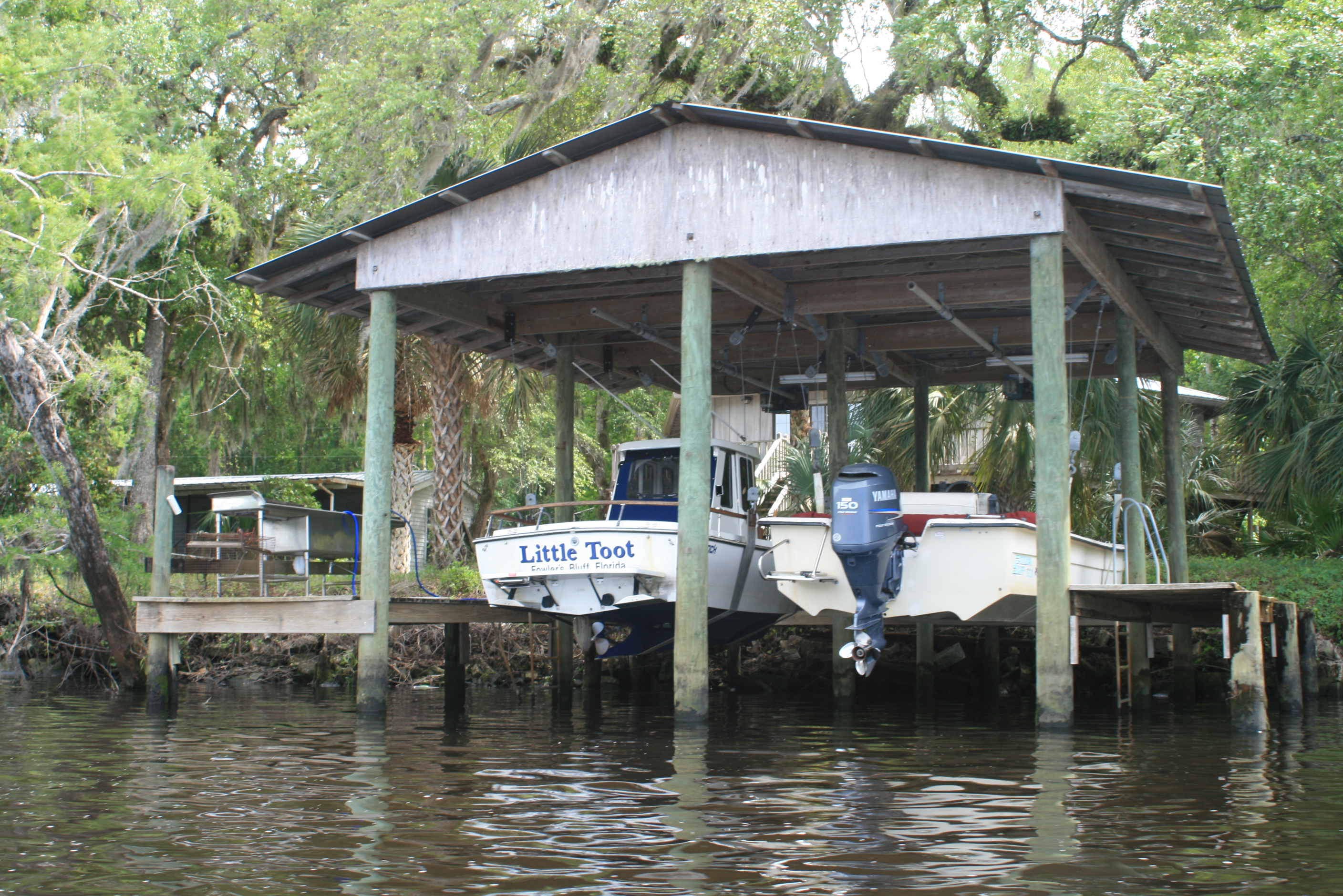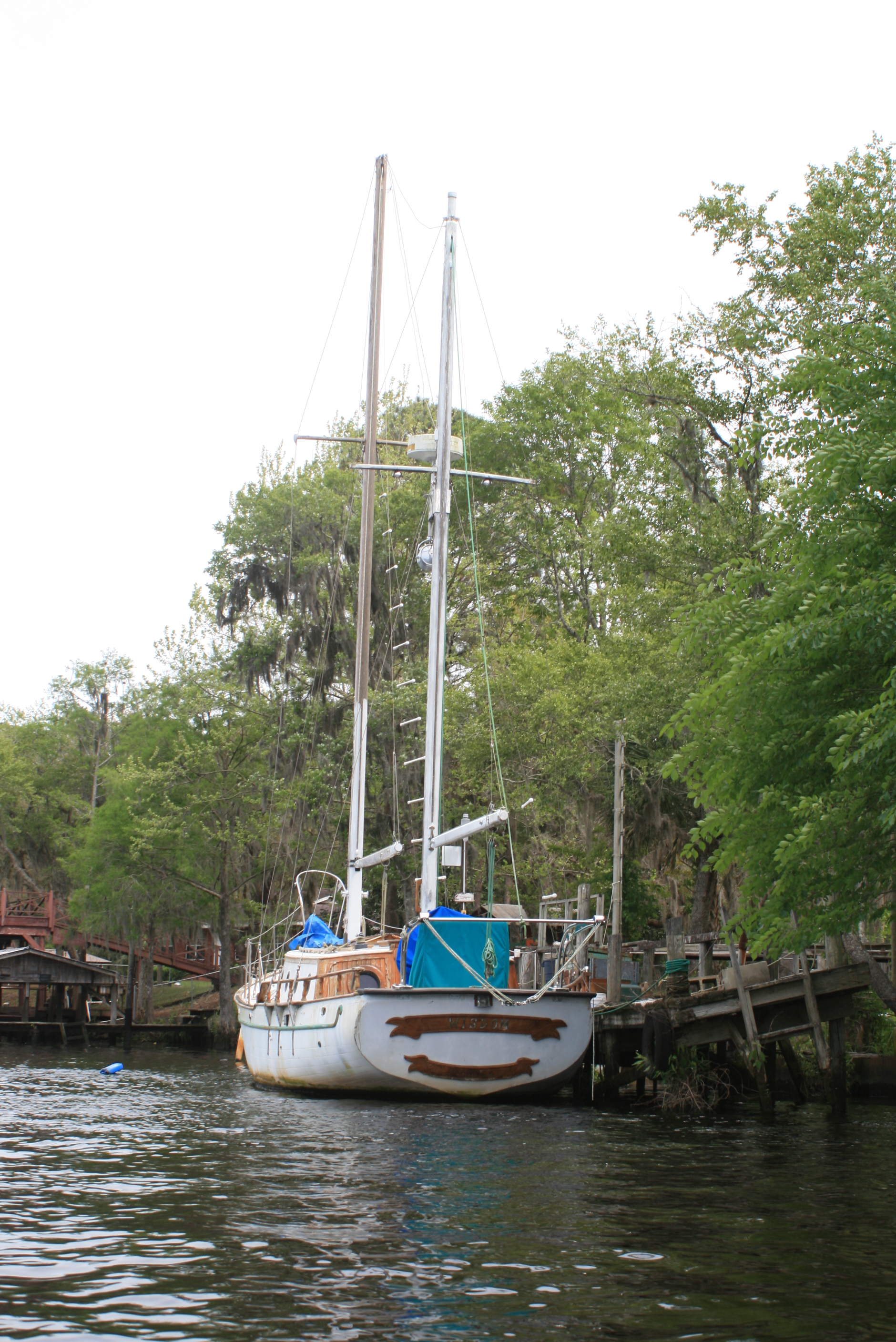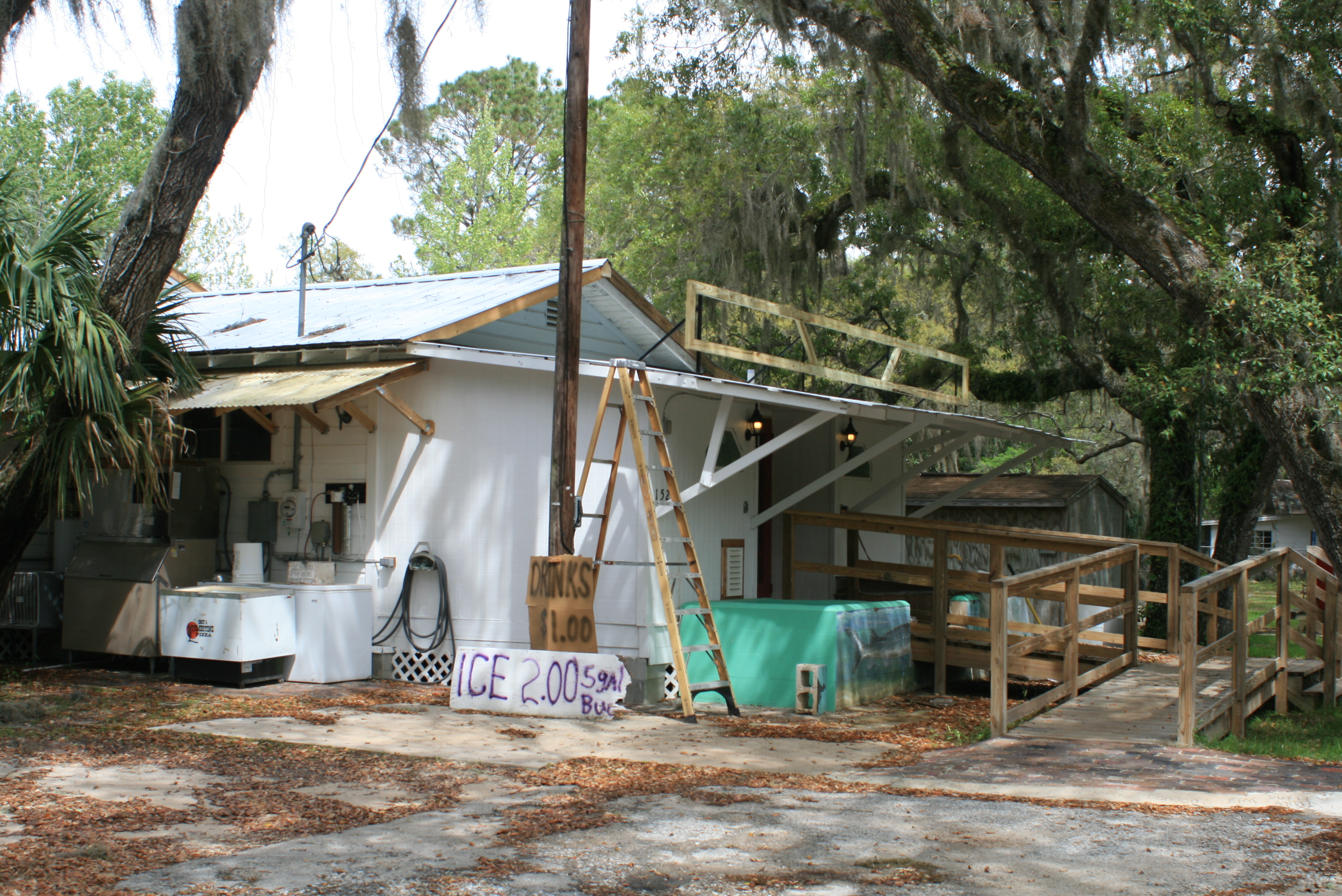 When I set up the tent last evening at the State Park in Fanning Springs the possibility of being idle on this date (due to passing weather) was real. Luckily the ‘front’ came through at 6am and was gone by 730 (I’ve slept through worse on the Mississippi). After packing a damp tent and tarp I rolled traveller down to the ramp, and while returning the dilapidated cart to its rightful place I headed to search for breakfast across the street.