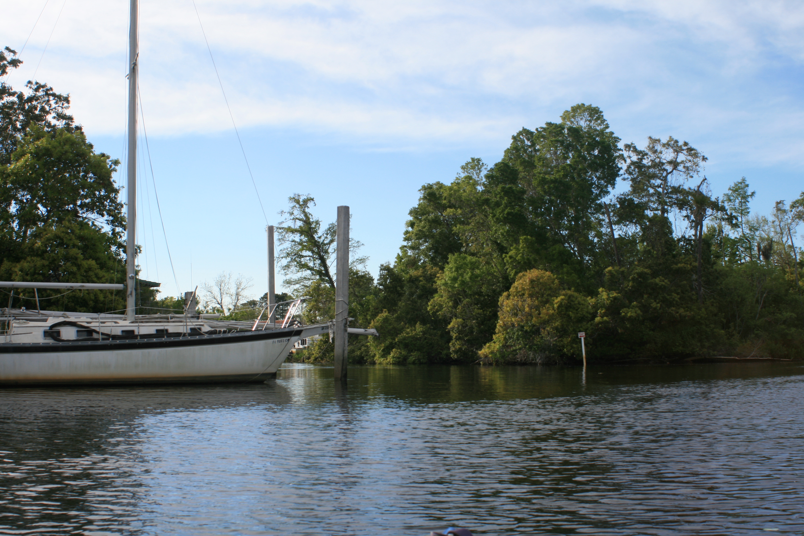 There are no markings for the Anderson River Camp from the Suwannee River, fortunately at the first canal a fisherman directed me into the canal and to my left – where eventually a small sign appeared.