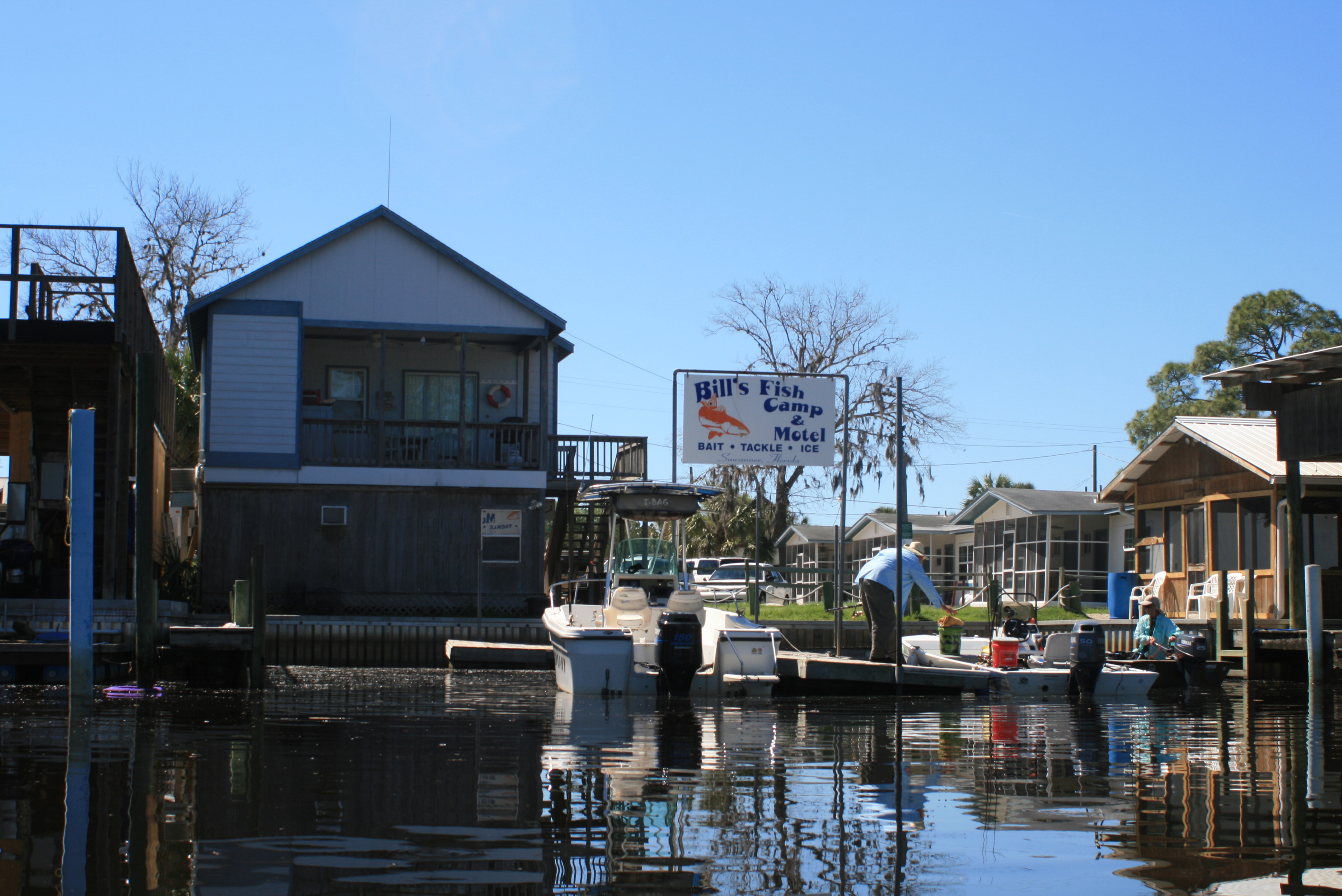 Nearing 6 pm and without noticing any boat ramps, it was a good feeling to finally see some roof tops on the horizon ahead; could it be Suwannee? – no matter; my tent was going up somewhere among them, – soon.