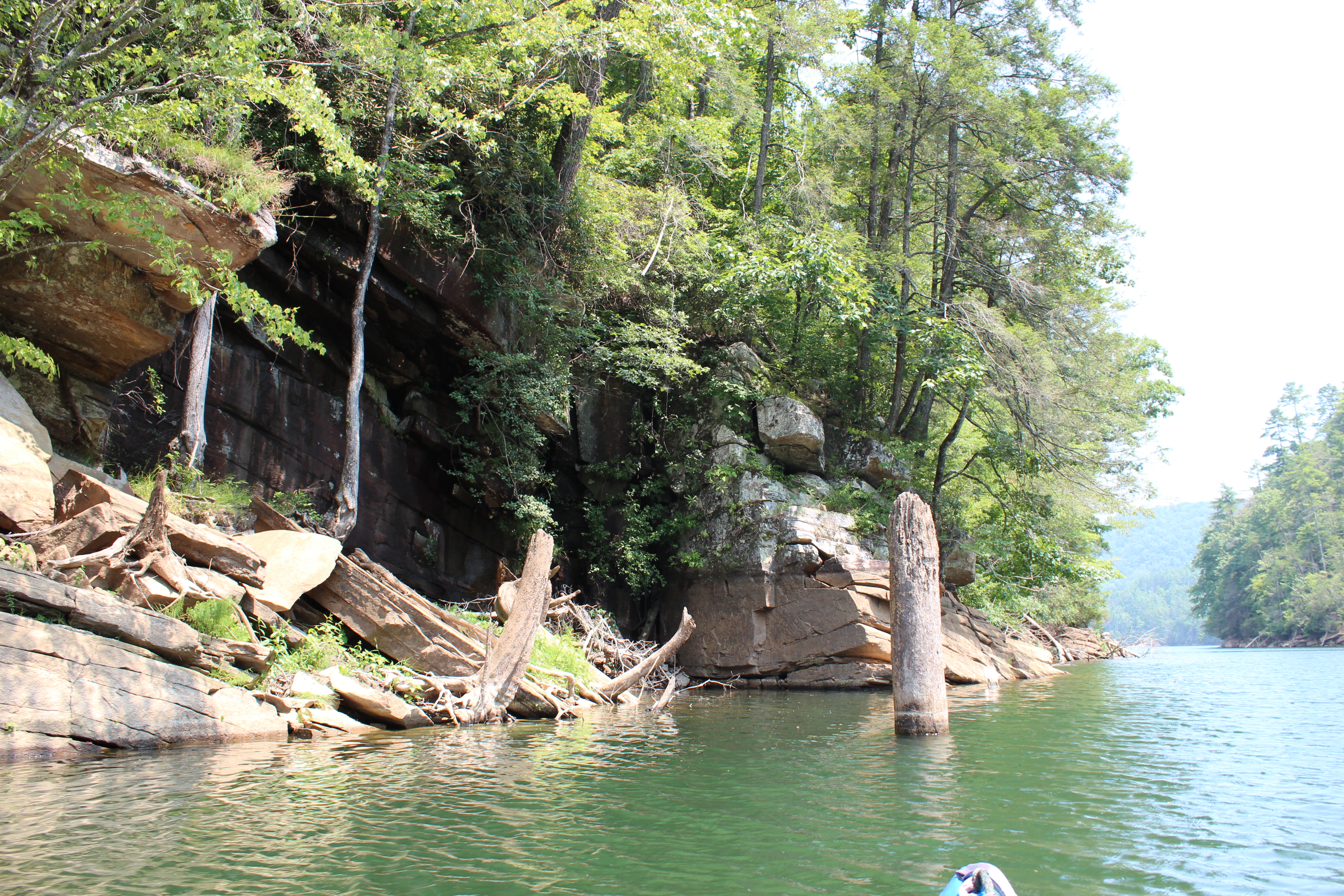 The Tallulah river flows from just above lake Burton, through lakes Seed and Rabun before entering Tugaloo down the Tallulah gorge. I’ve been within it and the gorge carved through the rock is impressive, from the lake its possible to get some feel with the steep banks leading up to the old Tallulah Falls Hydroelectric Plant.