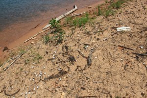 Just below the ‘bottle-neck’ I paddled up this cove, it was interesting to see all the water-bugs in a massive group staying out of the traffic and in the cool shady water.