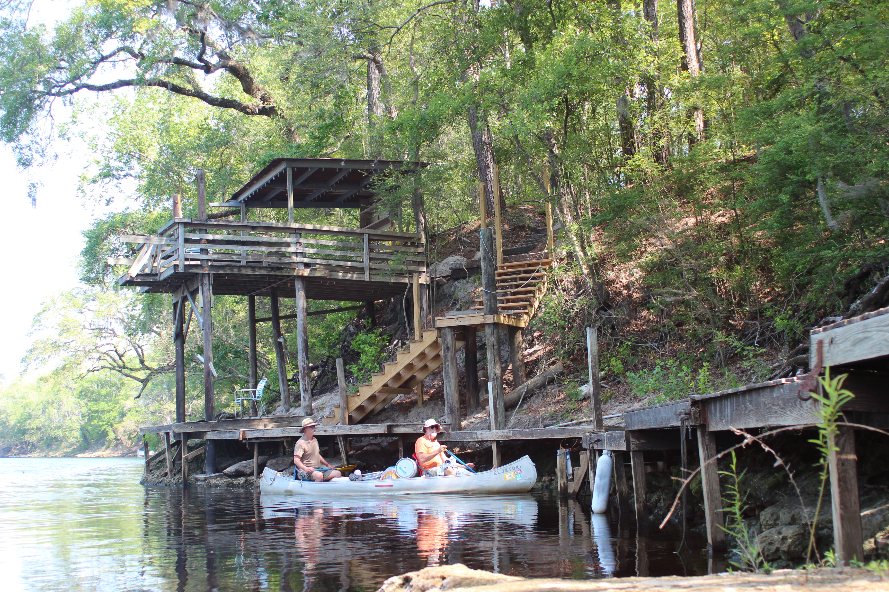 – and off they proceeded. At the bridge just downstream from Dowling Park (and up the landing) is a store less than 1/2 mile down the road, FYI – I walked for ice before paddling on to catch up with the canoe.