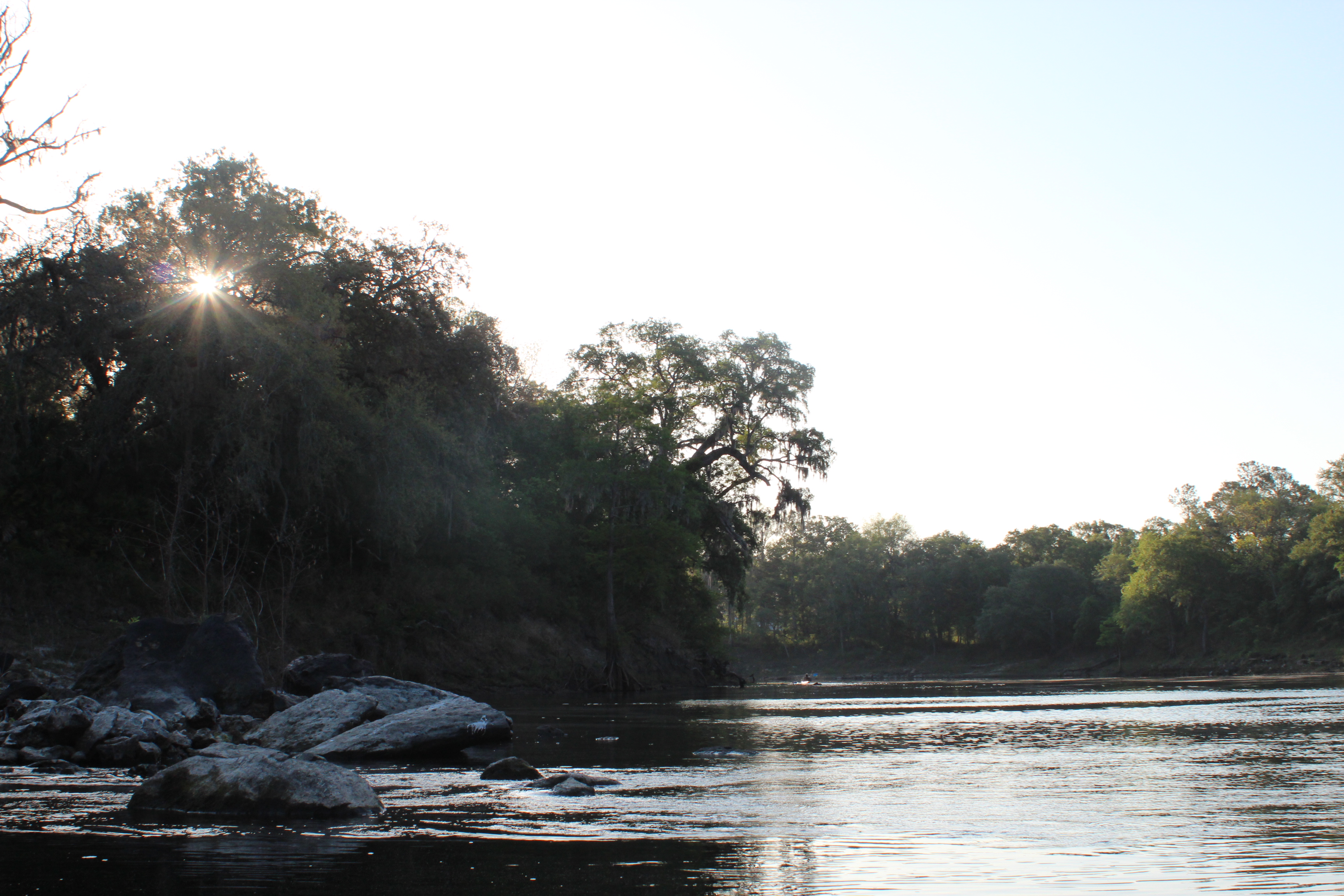 There were four sets of shoals through this section of the Suwannee, playful sections that broke up the constant paddling and helped the time pass a little faster. It made me wonder if the lower river level had increased the current’s rate of flow (current), I felt likely, in places.