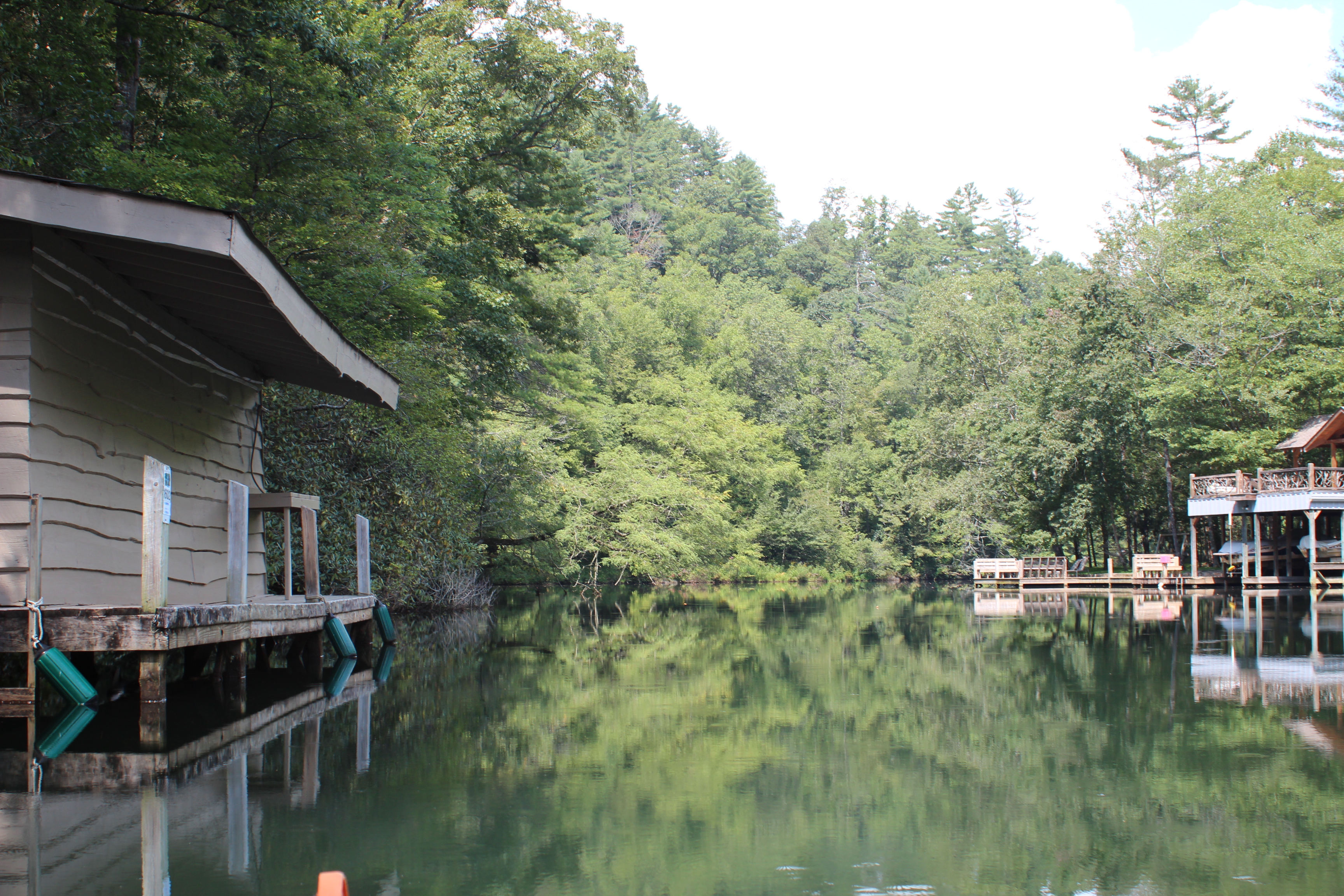 More boathouses and a slightly larger body of water near the Lake Seed (Nacoochee) dam.
