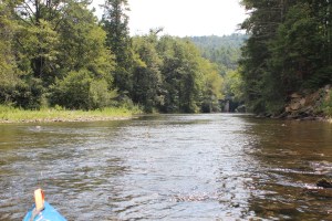 An hour and a half from put-in the headwaters. Feet-up and a snack of a turkey Sub, calibrate. Under me now is a slightly more visible current in motion – I like free-rides..
