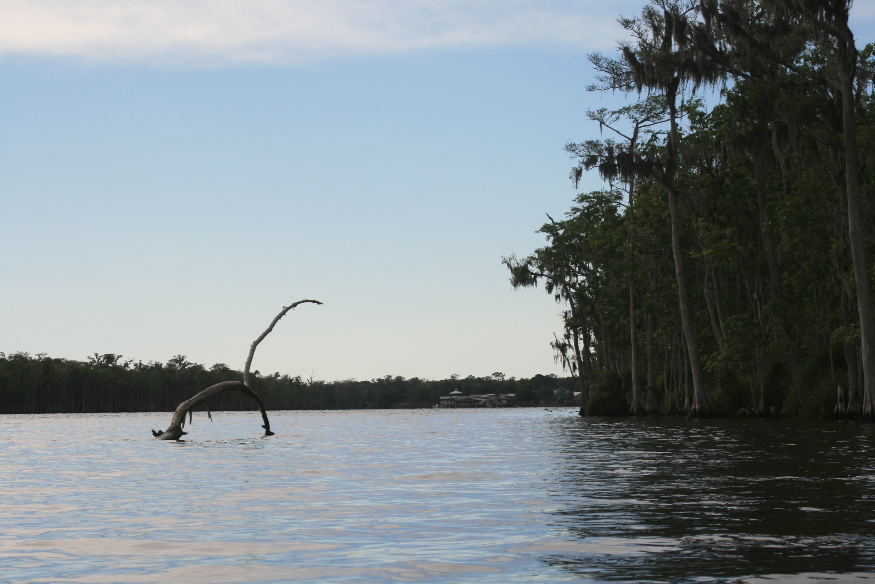 After lunch the wind came from the South in a convincing manner, the Suwannee is much wider now and its almost possible to watch the wind ‘funneling’ down and racing across the water towards you – have the hat-strap to the front. Because of how the river meanders it is also possible to work the wind much like paddling against a current, utilizing wind-eddy’s or land features for ‘dead-air’ instead of the water kind. Having a compass on the bow is interesting too, I watched it frequently for Gulf orientation.