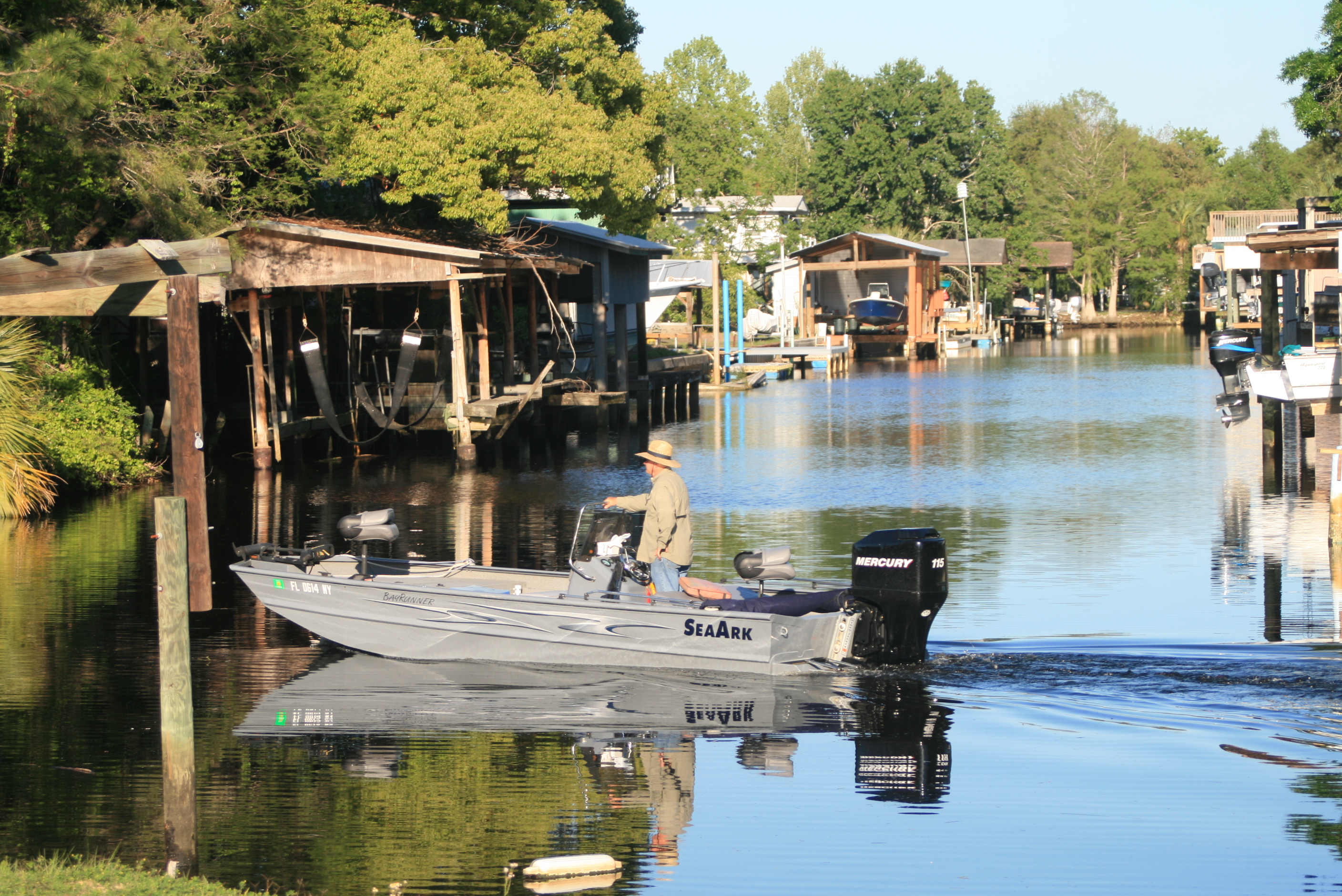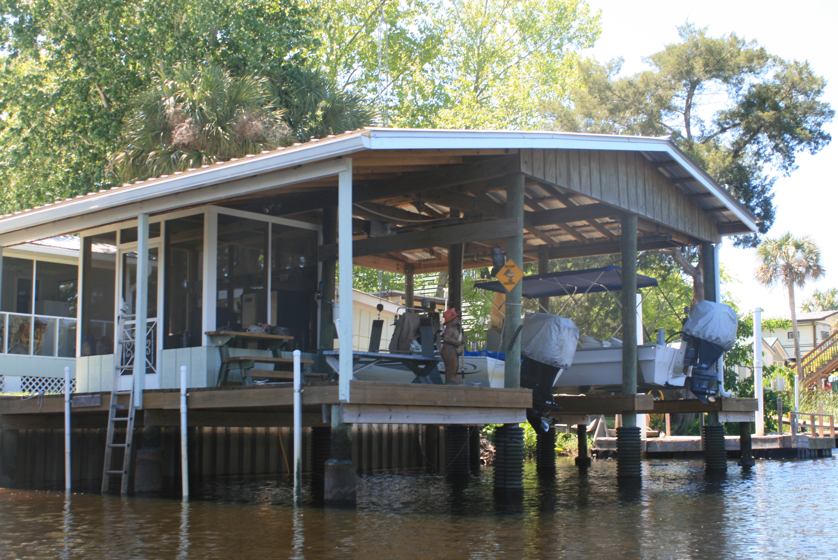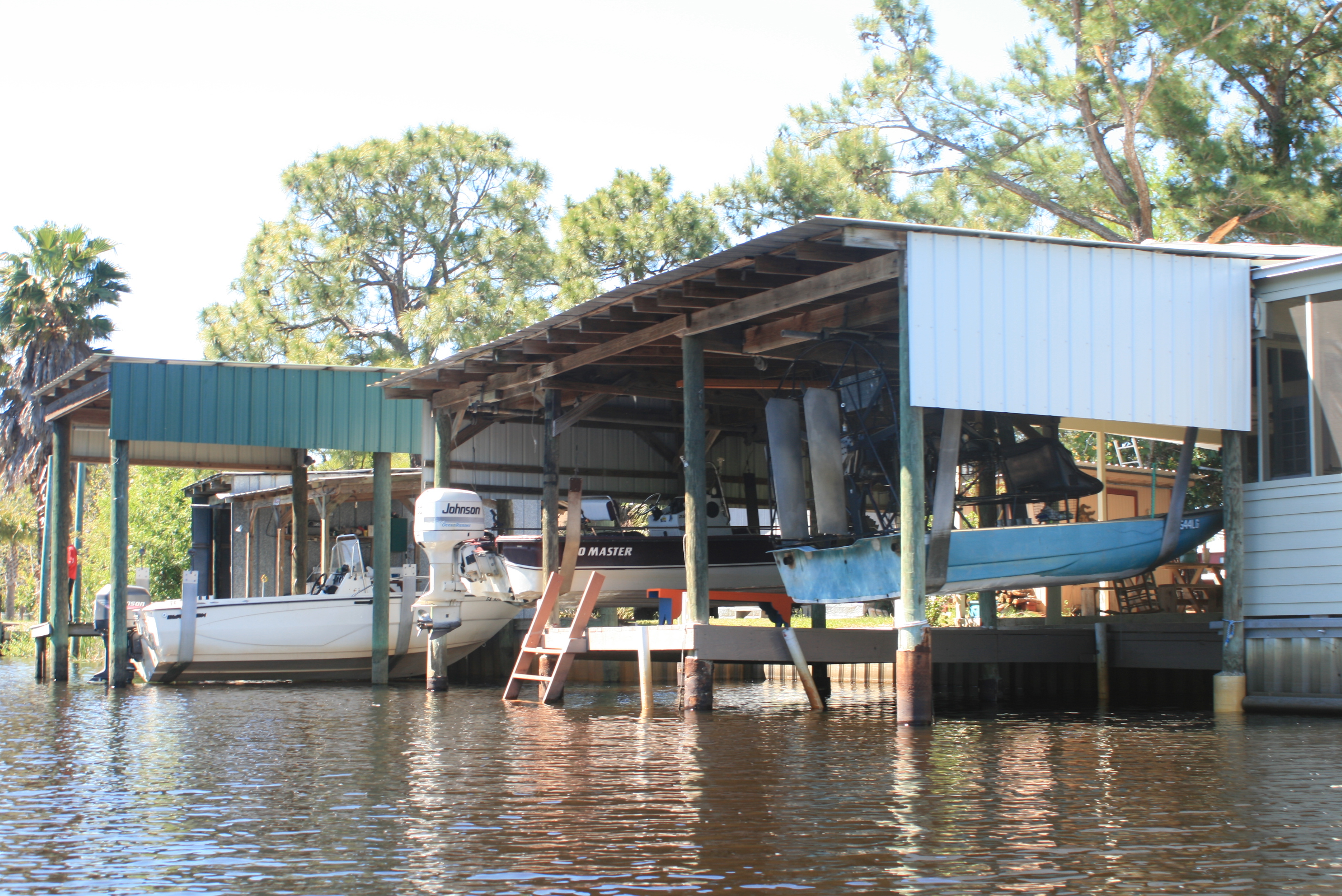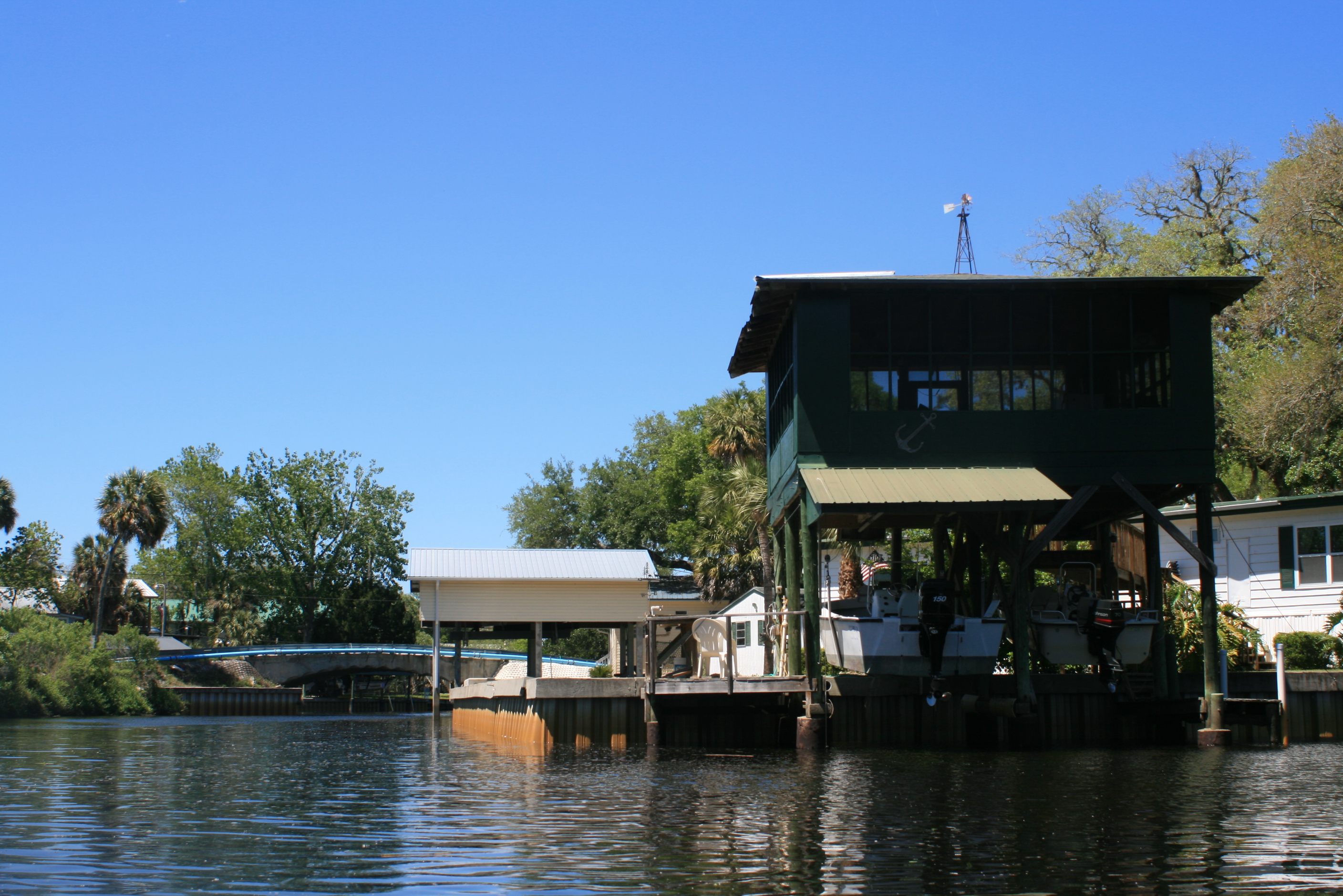 The docks can be improvised or have evolved in various fashion to suit the shore-scape, lots of plastic barrels and retired pontoons. There were also the ‘Florida rooms’ built in all kinds of places – on all kinds of posts and trees, a good number improperly shored or braced – ‘old-man river’ style.