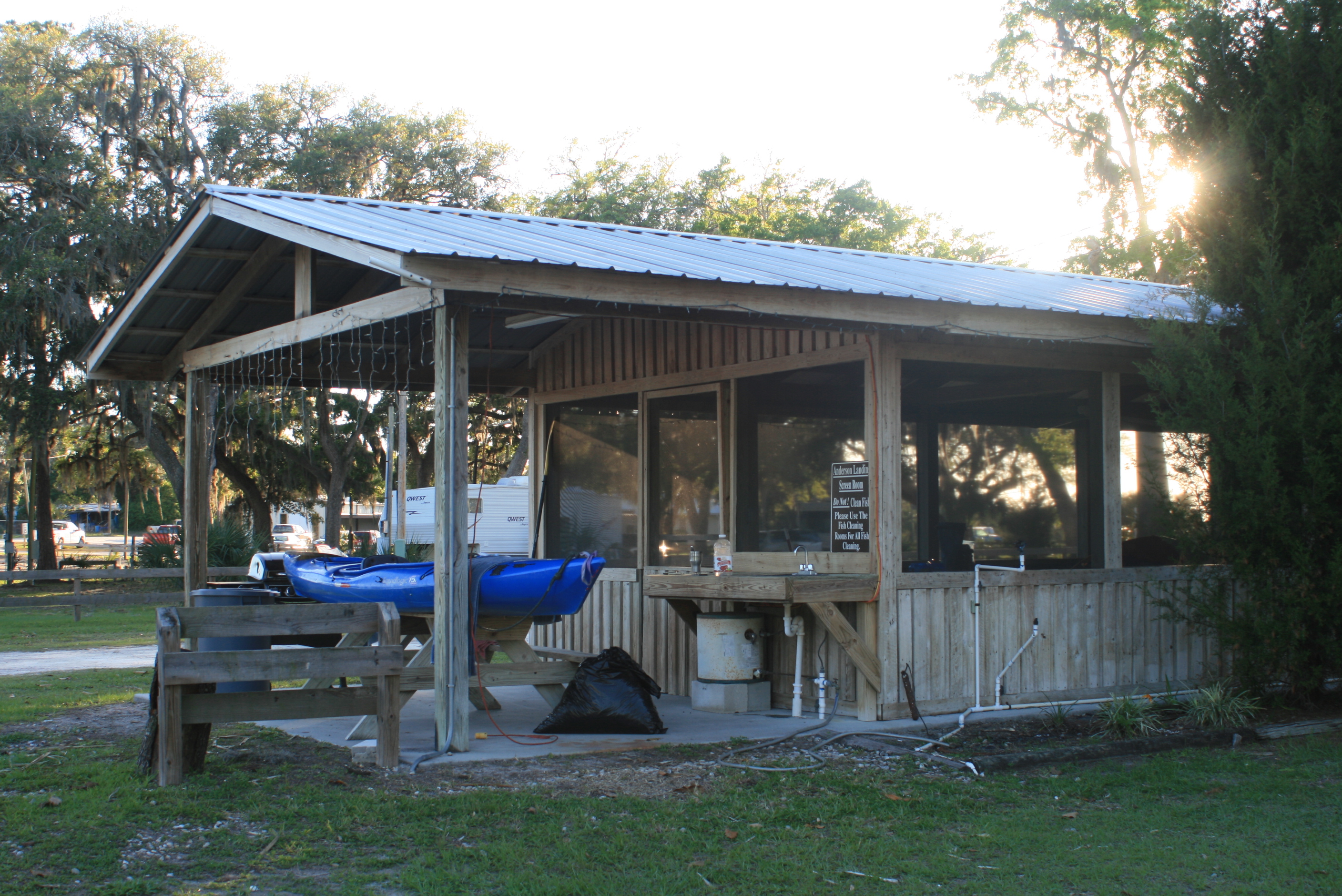 Fanning Springs State Park emphasis is more on the Springs to which the community (‘cut-offs and dated bathing suits’) frequent rather than camping – so there are no established campsites with power or water service. There is a cold-water outside shower or there are the springs, no hot water shower to defunk, I used the springs.