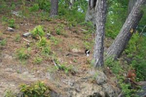 We enjoyed some campfire time with the canoe club folks (takes longer for stories to come up twice) and then somewhere during the night a steady rain came through. It was within this great sleep that a nearby tree slowly creaked, craaaacked – and then suddenly let-go – whosh! boom! thud! all in one. I think I was sitting straight up in the tent between the whosh and thud…. figured I could reach outside the tent and touch it – but the next morning found it to be much further away.
